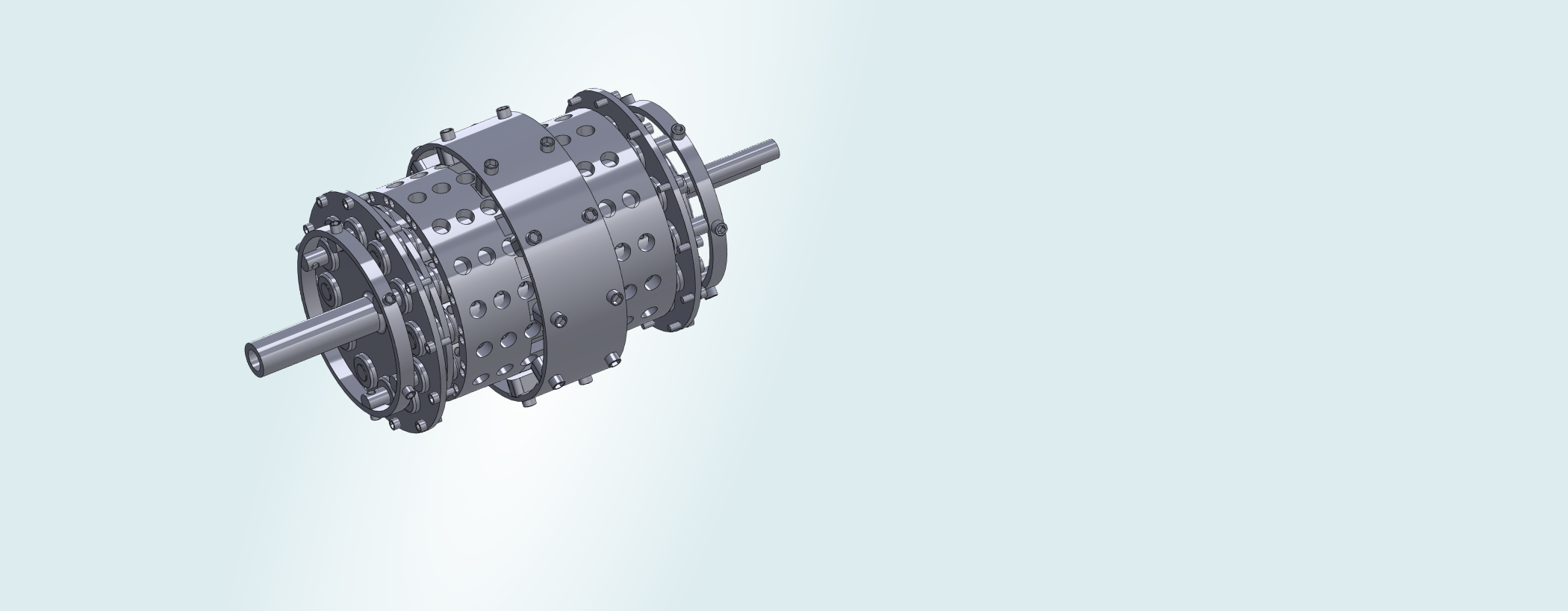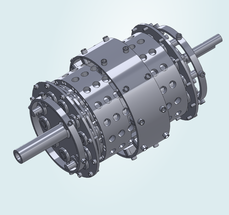 The CWE is a groundbreaking new electrolyzer with ingeniously engineered wing-shaped electrodes. It has been designed with the fluid-dynamics of the electrolyte in mind and acts as an all-in-one electrolyzer and H2/O2 separator. Centrifugal forces are leveraged to concentrate the electrolysis process between narrowly spaced electrode wings, bringing beyond state-of-the-art efficiency.
