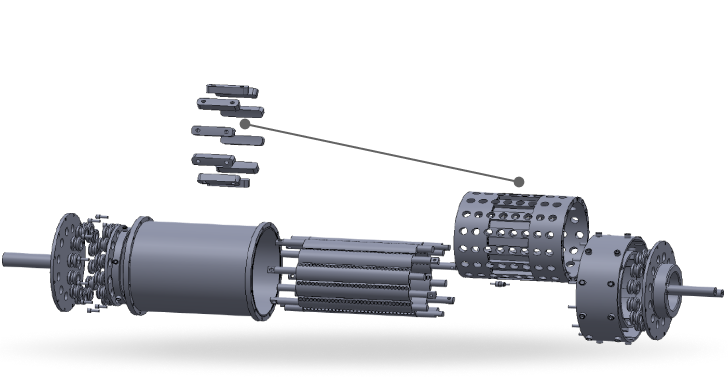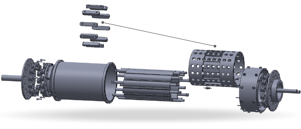 The aperture array counteracts the centrifugal forces by moving water the minimum distance required to assure a constant water flow through the gap of the electrode wings. Additionally, electrode wings are coated with an electrically insulating material at all points except at the very edges – this reduces stray currents and electrical losses.